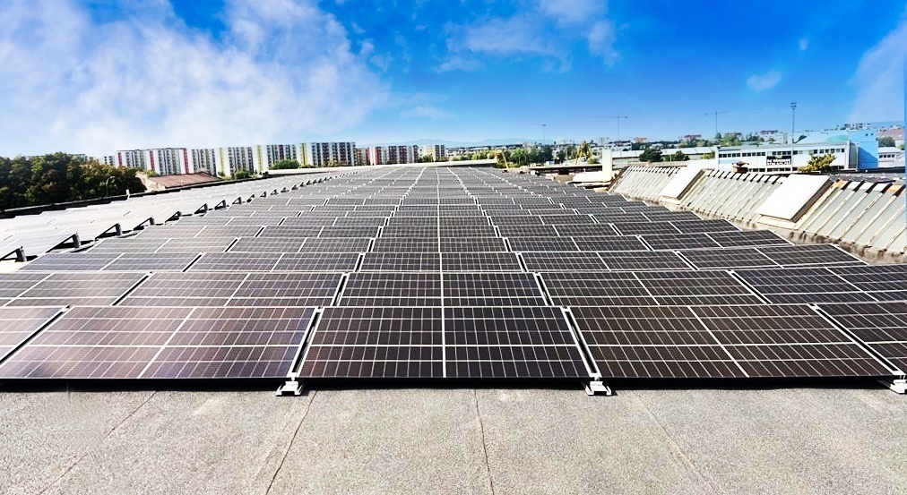 Schrägmontagesystem mit niedrigem Ballast für PV-Installationen auf Flachdächern