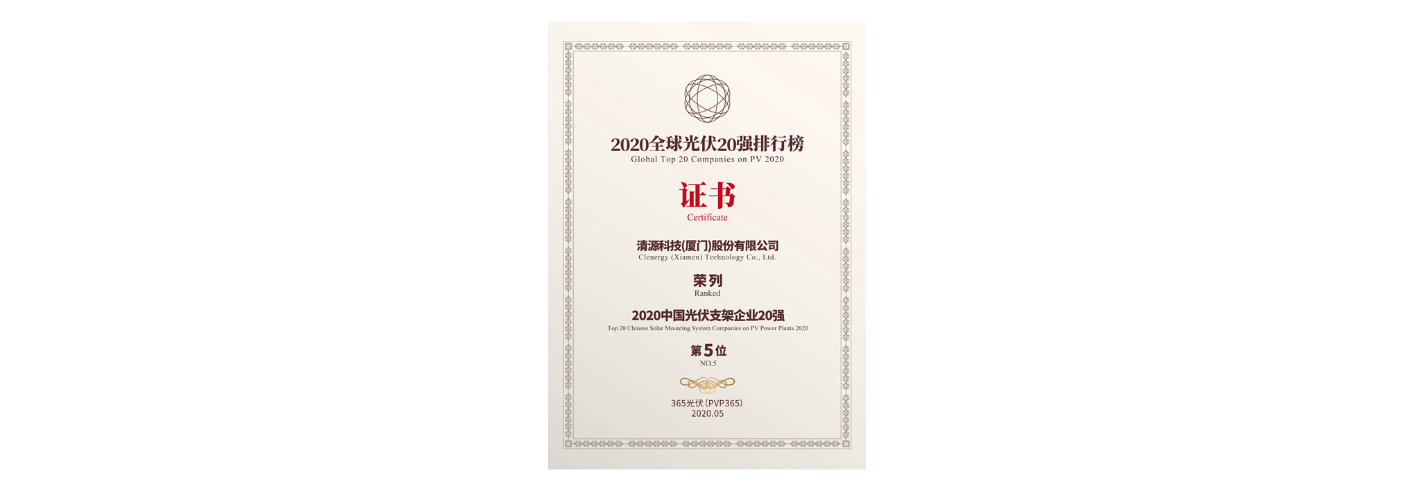 Clenergy auf Platz 5 der besten chinesischen Solar-Montagesystem-Unternehmen 2020