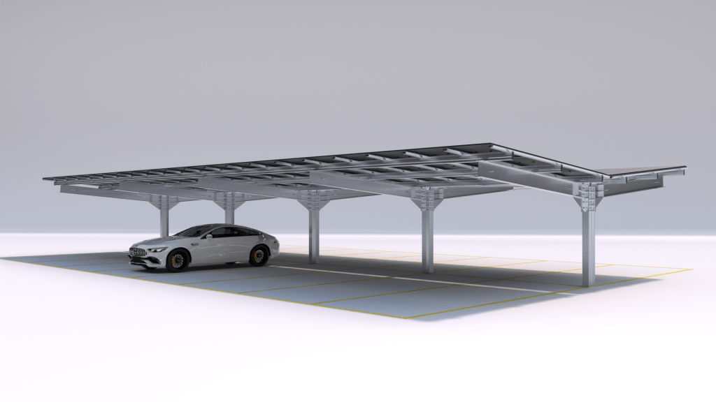 Mit dem einzelnen Pfosten am Ende des Carports, der eine optimale Raumausnutzung gewährleistet, können Menschen leicht sowohl gerade als auch schräg parken und bequem ein- und ausfahren.